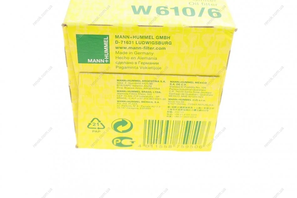 Аналоги "W 610/6 MANN":