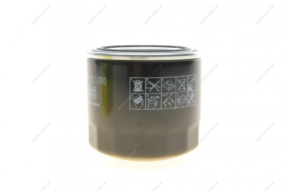 Фільтр масляний Kia Ceed/Rio 1.4-1.6 05-/Hyundai Tucson 2.0 04-/Sonata 1.8-3.0 88-/Mitsubishi/Mazda MANN W 811/80 (0RF0323802, FL2008, 31726AN800)