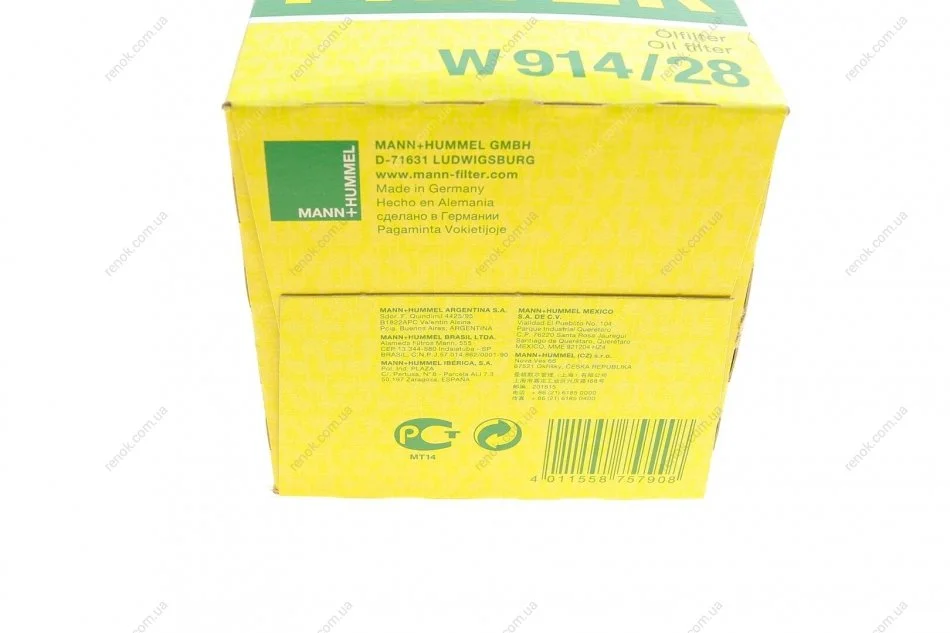 Фільтр масляний Fiat Ducato 2.3JTD 02-/Iveco Daily 2.3HPT/3.0CNG 05- MANN W 914/28 (500040977)