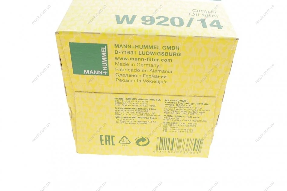 Аналоги "W 920/14 MANN":