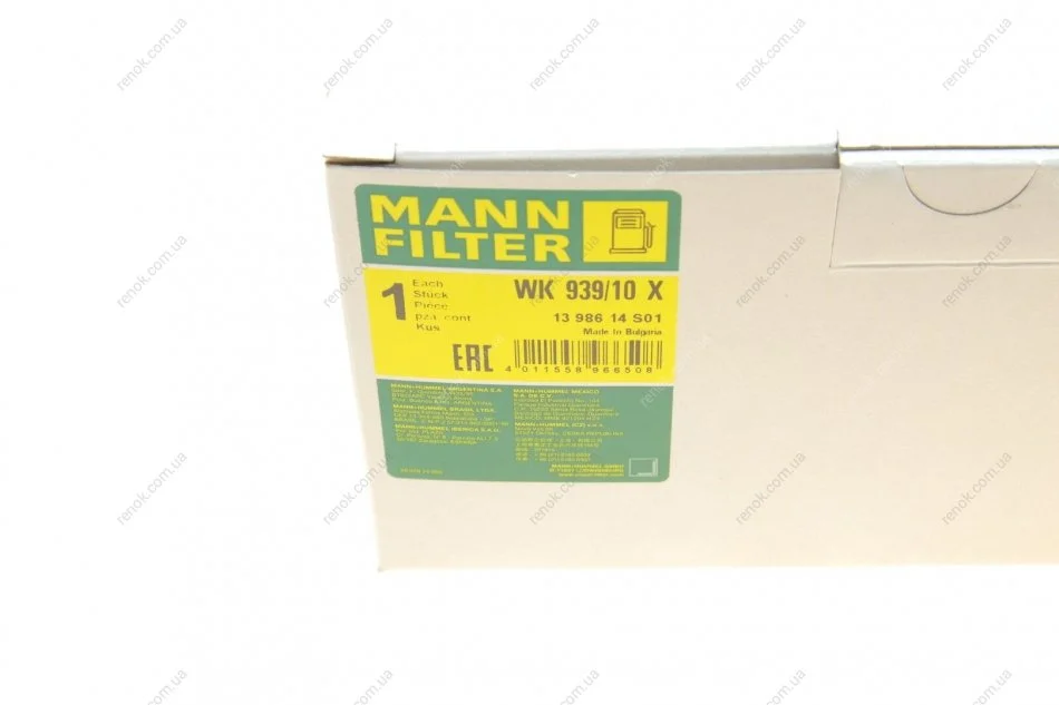 Фільтр паливний Renault Megane/Scenic II 1.5 dCi 02- (з прокладкою) MANN WK 939/10 x (8200186218, 7701061577)