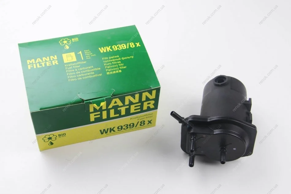 Фільтр паливний Renault Kangoo 1.5DCI 01- (під датчик води) MANN WK 939/8 x (7701061576, 8200151379)
