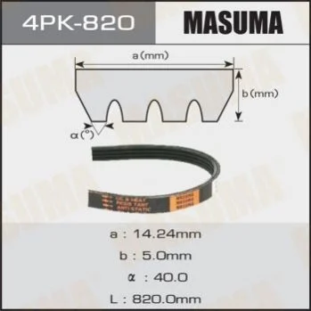Ремінь поліклінової (4PK-820) MASUMA 4PK820 (8845887710, 31110P3F004, 38920P2A003)