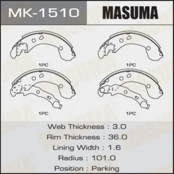 Колодки гальмівні гальма стоянки Nissan Micra (02-10), Note (06-13) (MK-1510) MASUMA MK1510 (44060AX625, D4060AX600, 4406000Q0E)