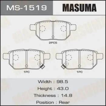 Колодки гальмівні задн Toyota Auris (08-12), Corolla (08-16), Prius (09-), Yaris (05-10) (MS-1519) MASUMA MS1519 (0446647030, 0446676010, 0446676011)