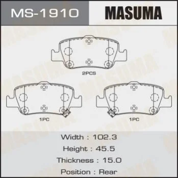 Колодки гальмівні задн Toyota Auris (06-13), Corolla (06-13) (MS-1910) MASUMA MS1910 (0446602180, 0446602182, 0446602192)
