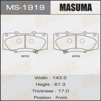 Колодки гальмівні передн Toyota Hilux (08-15) (MS-1919) MASUMA MS1919 (044650K240, 044650K320)