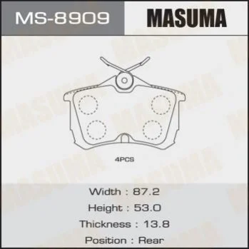 Колодки гальмівні (MS-8909) MASUMA MS8909 (43022SEAE01)