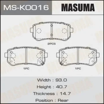 Колодки гальмівні задн (MS-K0016) MASUMA MSK0016 (583021GA00, 583022SA70, 583022YA50)