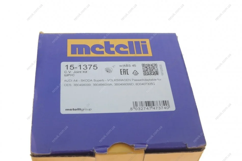 ШРКШ (зовнішній) Audi A4 94-01/Skoda SuperB 01-08/VW Passat 96-05 (33z/30z/53mm/87.9mm/30mm)(+ABS45z) Metelli 15-1375 (3B0498099, 3B0498099A, 3B0498099D)