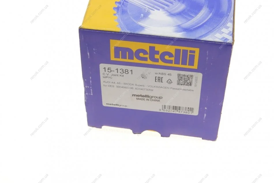 ШРКШ (зовнішній) Audi A4/A6/VW Passat B5 98-05/Skoda SuperB 02-08 (33z/27z/53mm/98mm/30mm) (+ABS45z) Metelli 15-1381 (3B0498099B, 8D0407305M)