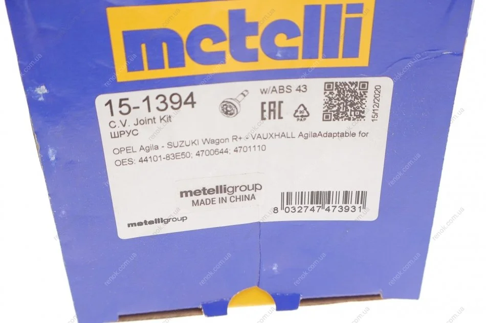 ШРКШ (зовнішній) Opel Agila 1.0/1.2 16V /Suzuki Wagon R+ 1.3 4WD 00- (23z/20z/49mm/72.3mm) (+ABS 43) Metelli 15-1394 (4410183E50, 4701110, 4700644)