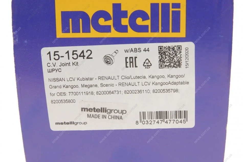 ШРКШ (зовнішній) Renault Kangoo 01-/Megane/Scenic 99-03 (23z/30z/57.3mm/85mm/50.8mm) (+ABS44z) Metelli 15-1542 (7700111918, 8200236110, 8200535798)