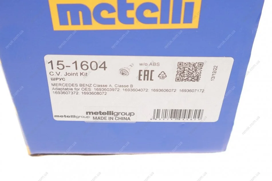 РШ шарнір (к-кт) Metelli 15-1604 (1693603972, 1693604072, 1693606072)