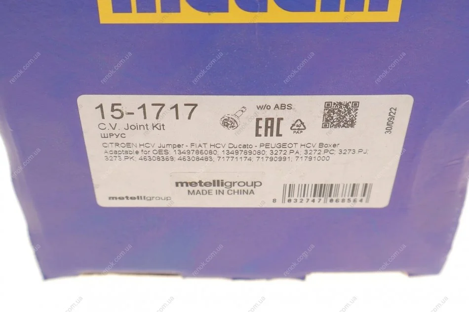 ШРКШ (зовнішній) Citroen Jumper/Fiat Ducato/Peugeot Boxer 06- (35z/27z/71.5mm/97.9mm/59mm) Metelli 15-1717 (3272PC, 3273PK, 3273PJ)