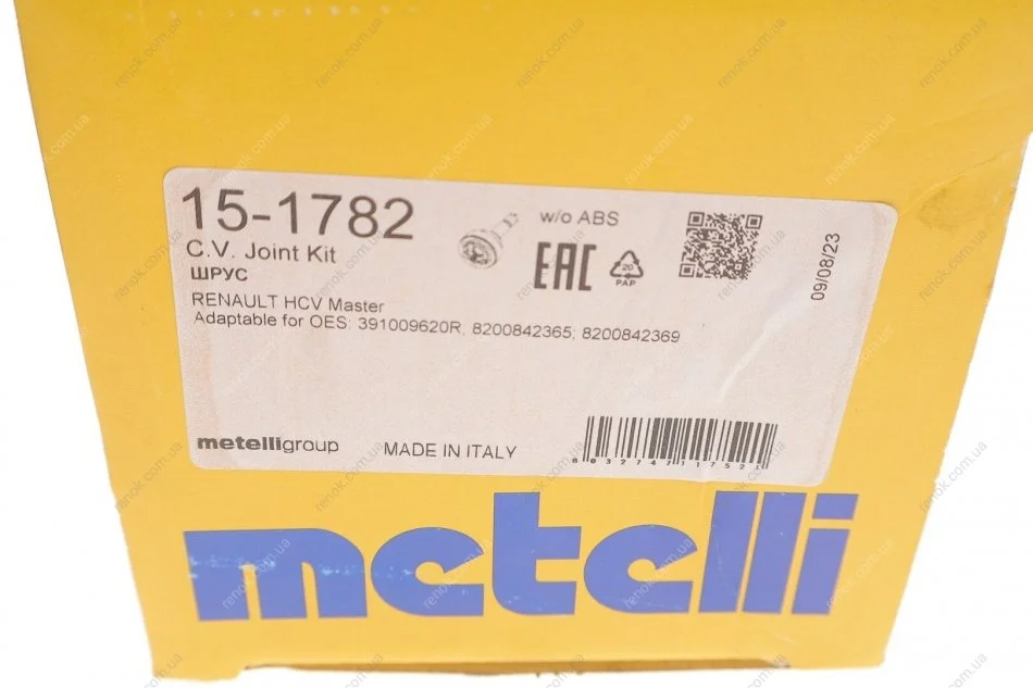 РШ шарнір (комплект) Metelli 15-1782 (8200842369, 8200842365, 391009620R)