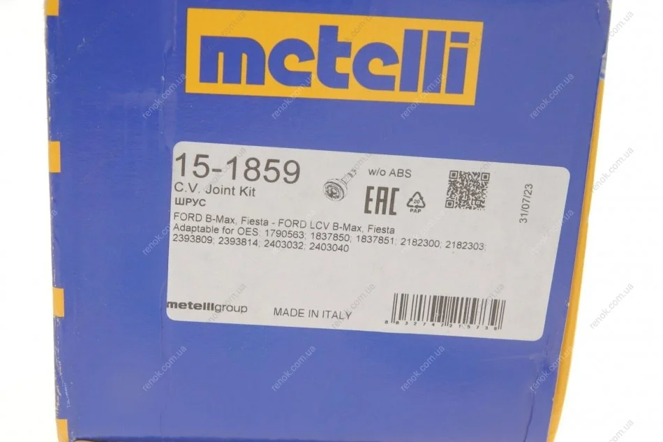 Шарнір рівних кутових швидкостей, з елементами монтажу Metelli 15-1859 (1790563, 1837850, 2182303)