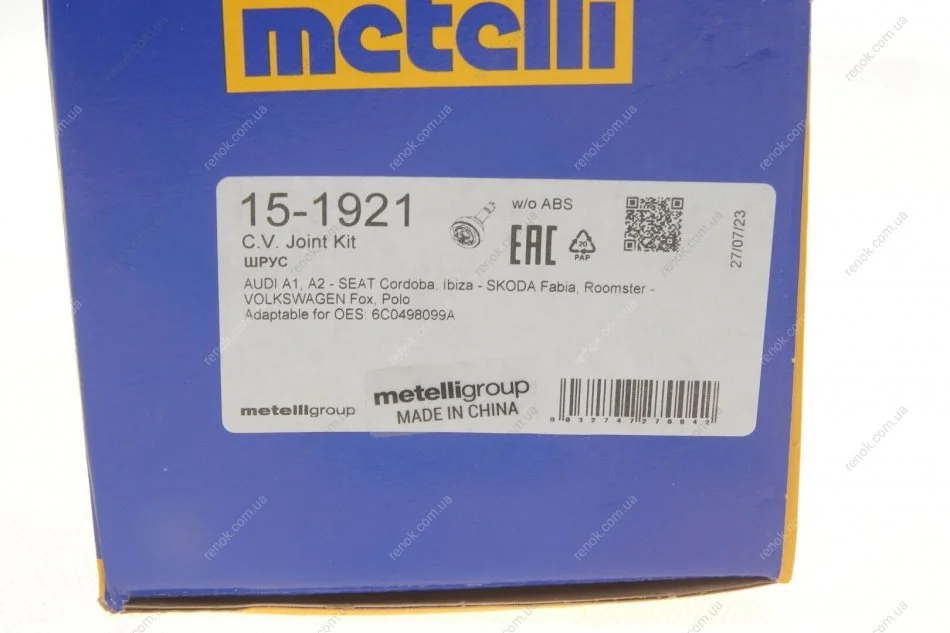 РШ шарнір (к-кт) Metelli 15-1921 (6C0498099A)