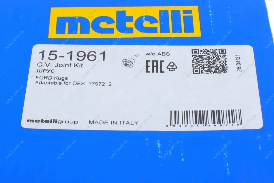 РШ шарнір (комплект) Metelli 15-1961