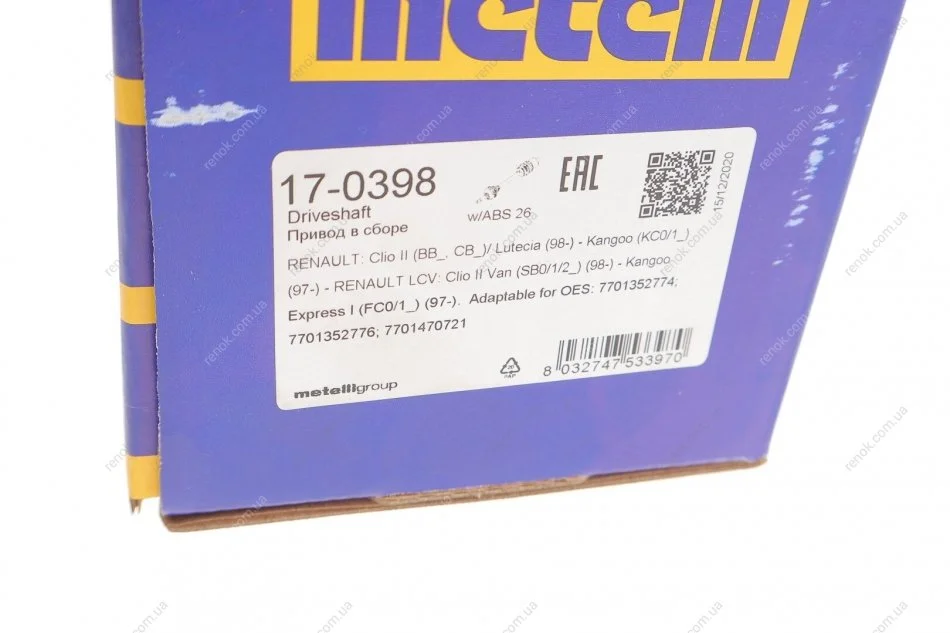 Аналоги "17-0398 Metelli":