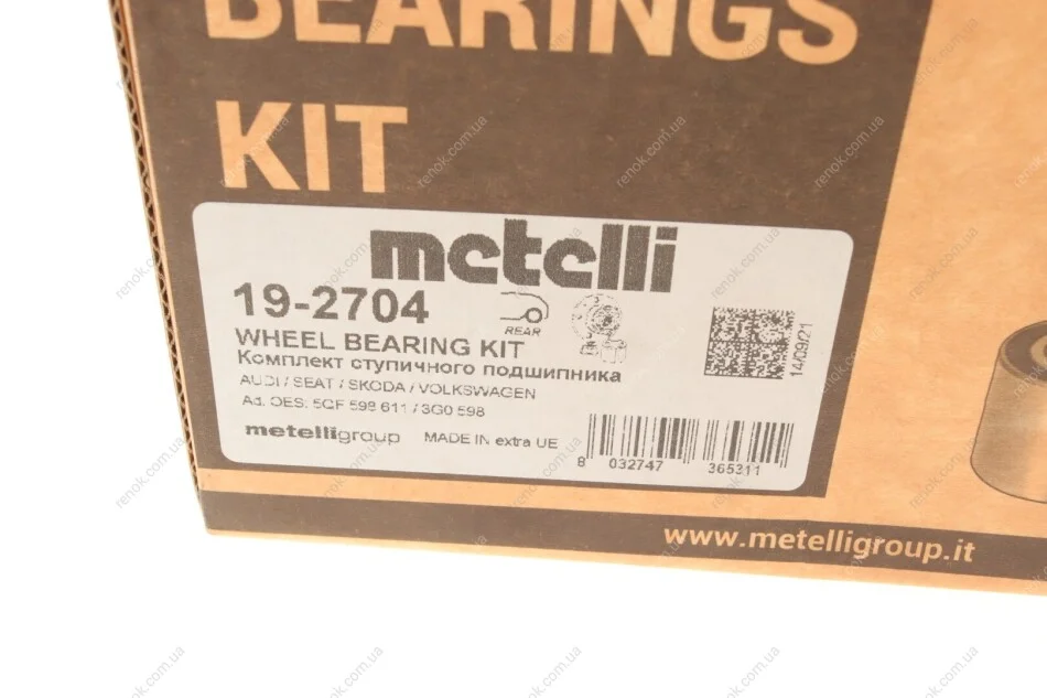 Підшипник маточини (задньої) Audi A3/Skoda Octavia/SuperB//VW Golf/Passat B6/B7/B8 03- (d=136.9mm) Metelli 19-2704