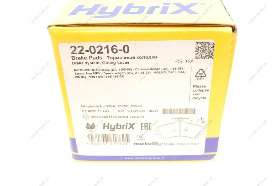 Аналоги "22-0216-0 Metelli":