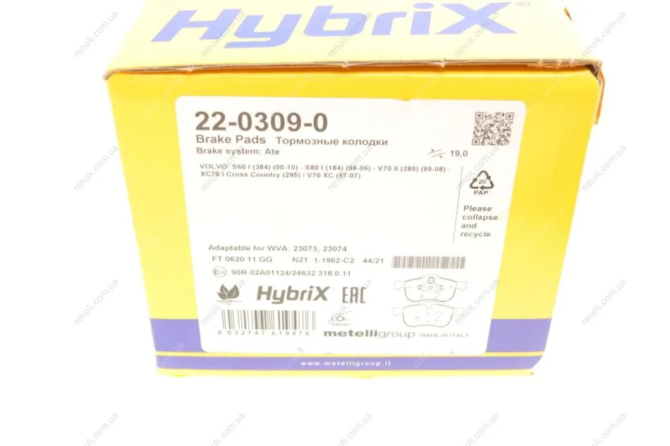 Колодки гальмівні (передні) Volvo S60 00-10/S70 97-00/S80 98-06/V70 95-06/XC70 Cross Country 00-07 Metelli 22-0309-0 (2724011, 272401, 30648386)