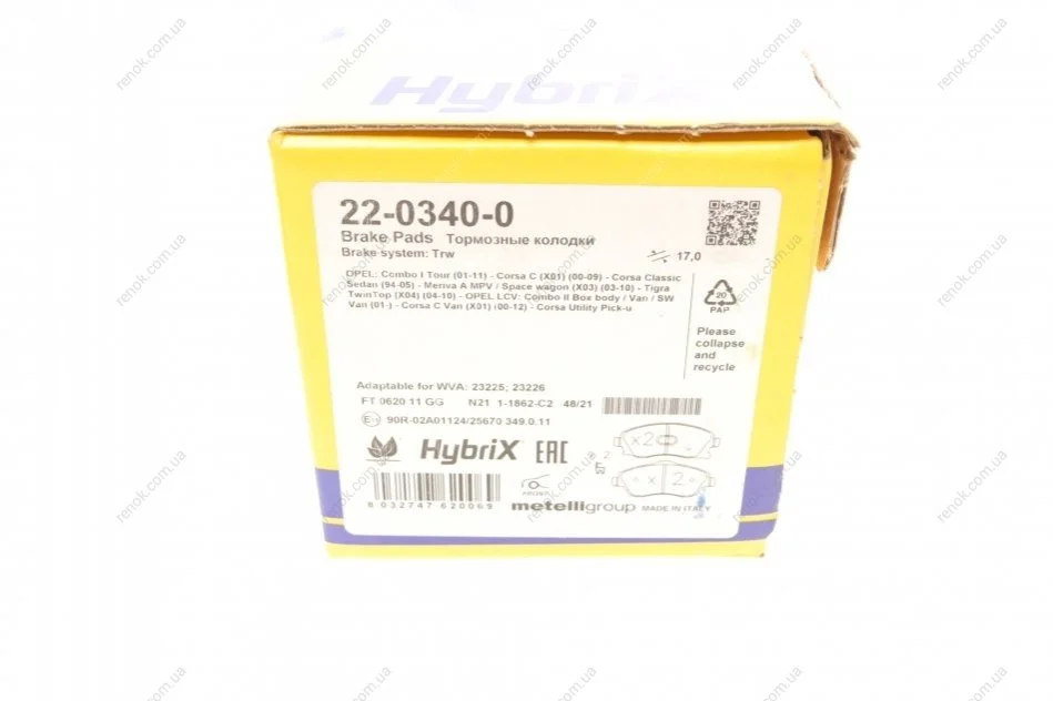 Колодки гальмівні (передні) Opel Combo 01-/Corsa C 00-09/Meriva A 03-10/Tigra 04-10 Metelli 22-0340-0 (1605081, 1605092, 1605974)