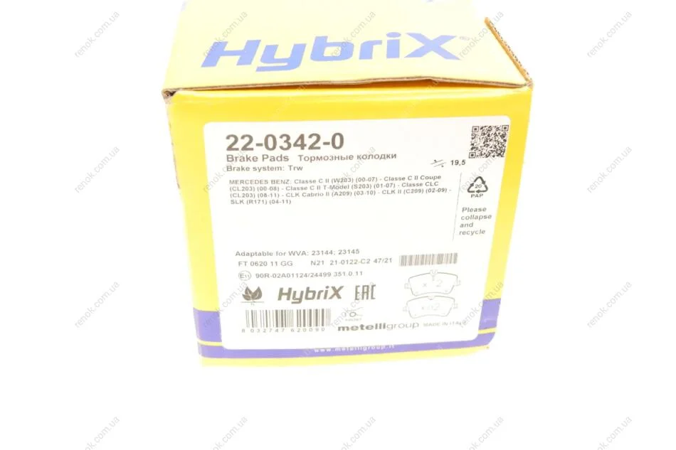 Колодки гальмівні (передні) MB C-class (W203/CL203/S203)/CLK-class (C209)/SLK-class (R171) 00-11 Metelli 22-0342-0 (005420622090, 0034202520, 0034202620)