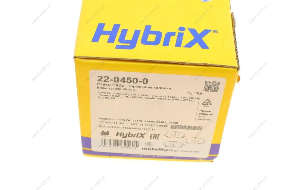 Колодки гальмівні (передні) Toyota Avensis 03-08/Corolla Verso 04-09 Metelli 22-0450-0 (0446505131, 0446505170, 0446505210)