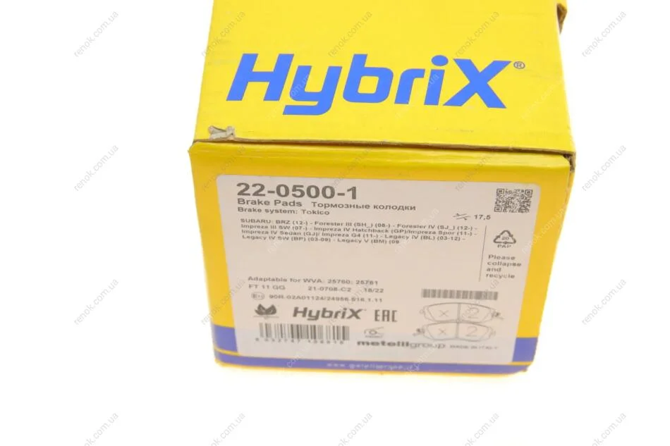 Колодки гальмівні (передні) Subaru Forester/Impreza/Legace V/Outback 10- Metelli 22-0500-1 (26296SC010, 26296SC011, 26296SC020)