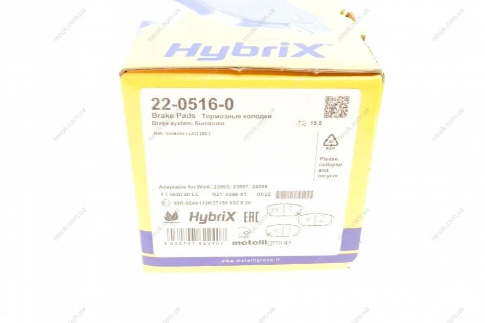 Аналоги "22-0516-0 Metelli":