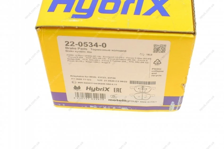 Колодки гальмівні (передні) Ford Connect 13-/C-Max 07-10/Kuga 08-/Focus/Volvo/Mazda 3 04-14/5 05- Metelli 22-0534-0 (1223682, 1321517, 1360305)