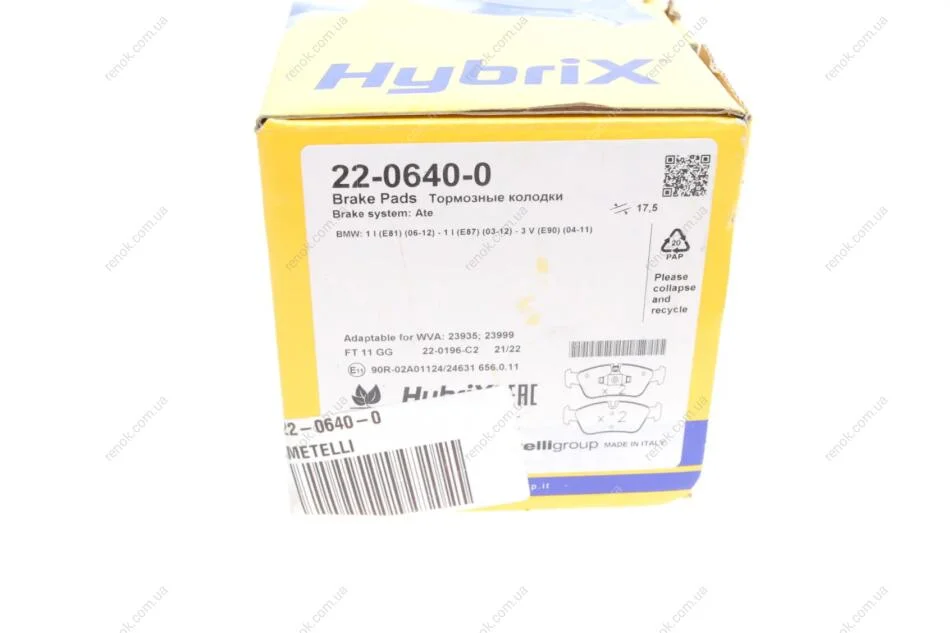Колодки гальмівні (передні) BMW 1 (E87)/ 3 (E90) 04-11 Metelli 22-0640-0 (34116769763, 34116769951)
