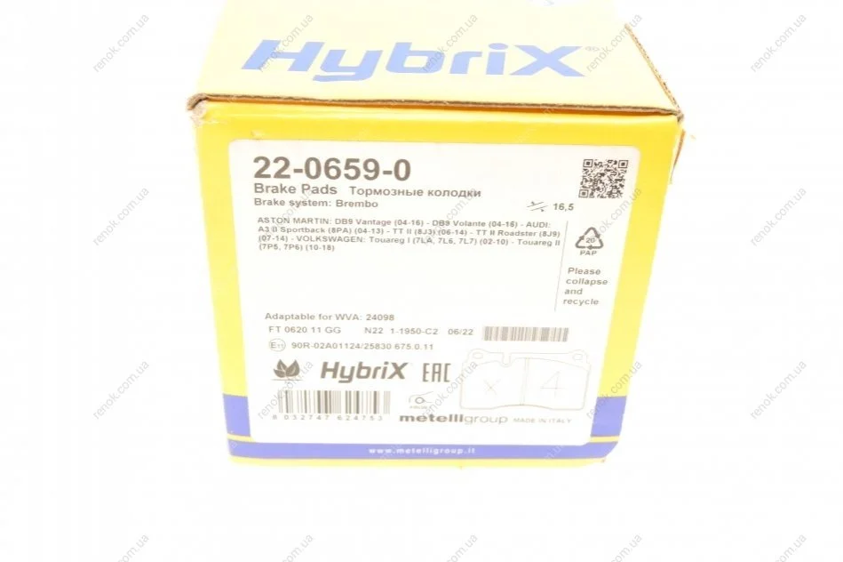 Колодки гальмівні (передні) Audi TT 09-14/VW Touareg 02- Metelli 22-0659-0 (7L6698151G, 7P6698151C, 7L6698151E)