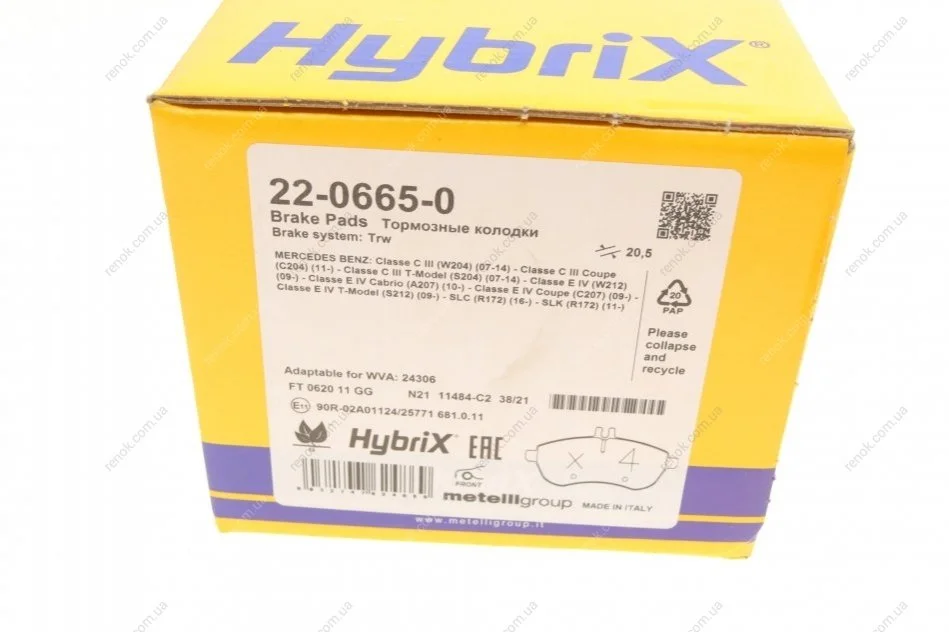 Колодки гальмівні (передні) MB C-class (W204/W205) 07-/E-class (W212) 09-16/SLK (R172) 11- Metelli 22-0665-0 (000420030590, 0004201005, 0074201620)