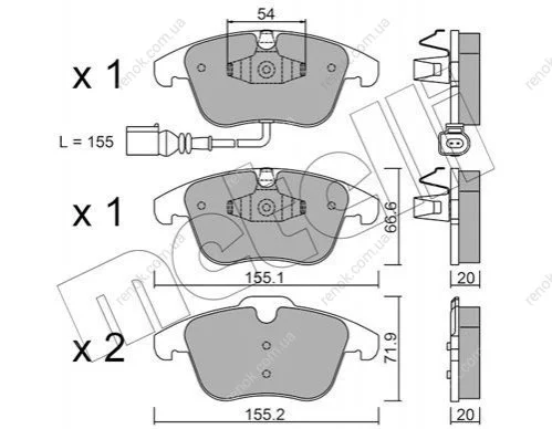 Колодки гальмівні (передні) Audi Q3 11-18/VW Passat B8 14-/Tiguan 07-/Sharan 10- (+датчик) Metelli 22-0675-1 (5N0698151, 5N0698151A, 5N0698151B)