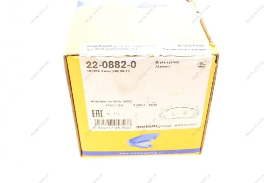 Колодки гальмівні (передні) Toyota Camry 06-/Lexus ES 06-18 Metelli 22-0882-0 (0446506070, 0446506080, 0446506110)
