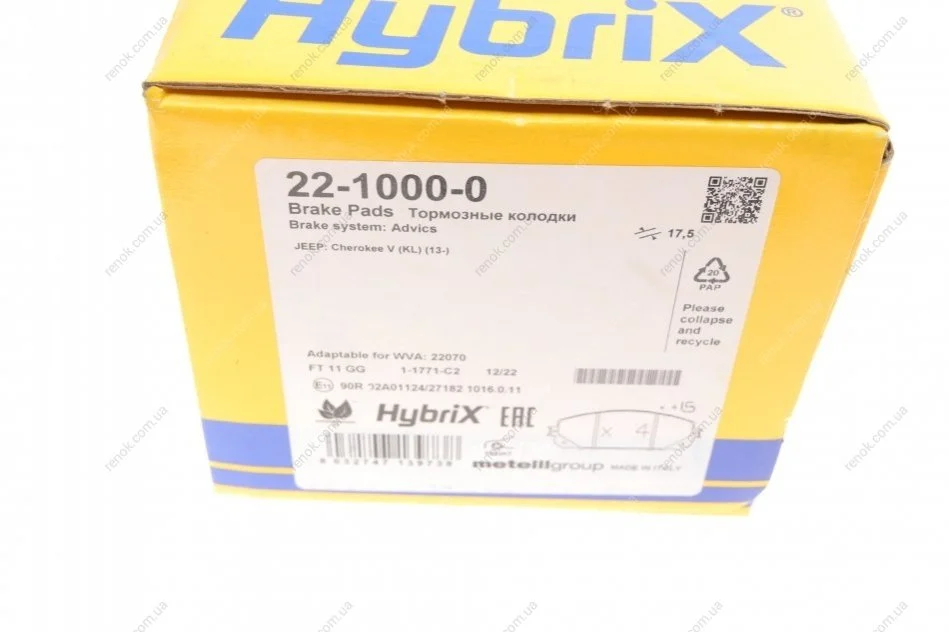 Колодки гальмівні (передні) Jeep Cherokee 13- Metelli 22-1000-0 (k68227573AA, K68225170AB, K68212327AB)
