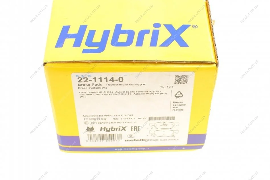 Колодки гальмівні (передні) Opel Astra K 15- Metelli 22-1114-0 (13478300, 39103797)