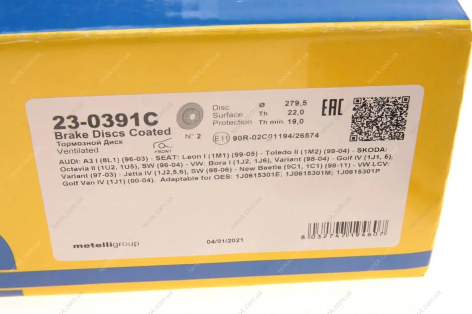 Диск гальмівний Metelli 23-0391C (1J0615301E, 1J0615301P, 1J0615301M)
