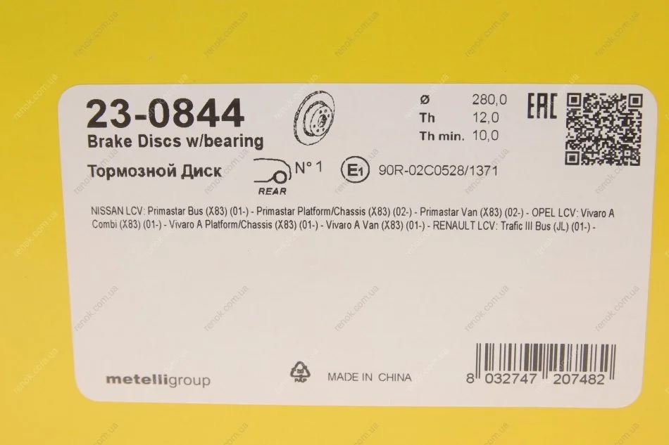 Диск гальмівний (задній) Renault Trafic/Opel Vivaro/Nissan 01- (280х12) (повний) (з підшипником) Metelli 23-0844 (7701206846, 8200228610, 7711130076)