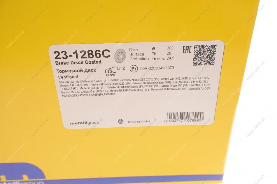 Диск гальмівний (передній) Renault Master 10- (302x28) (з покриттям) (вентильований) Metelli 23-1286C (8200688880, 4020600Q0G, 4419359)