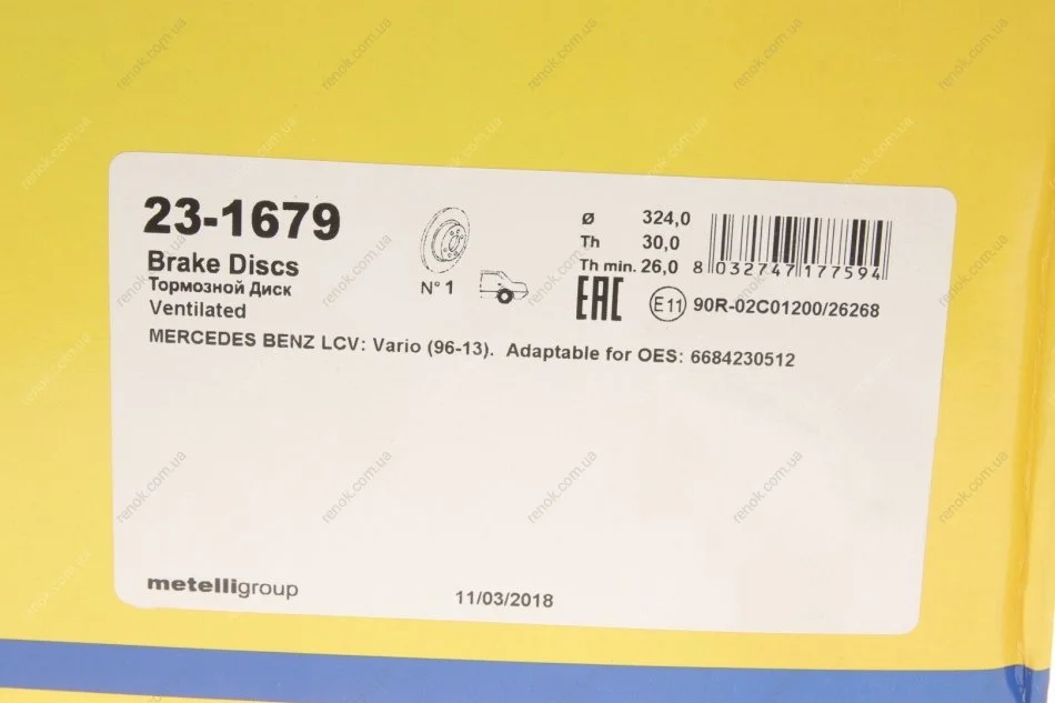 Диск гальмівний (задній) MB Vario 614 (324х30) (+ABS) (вентильований) Metelli 23-1679 (a6684230512, 6684230512)