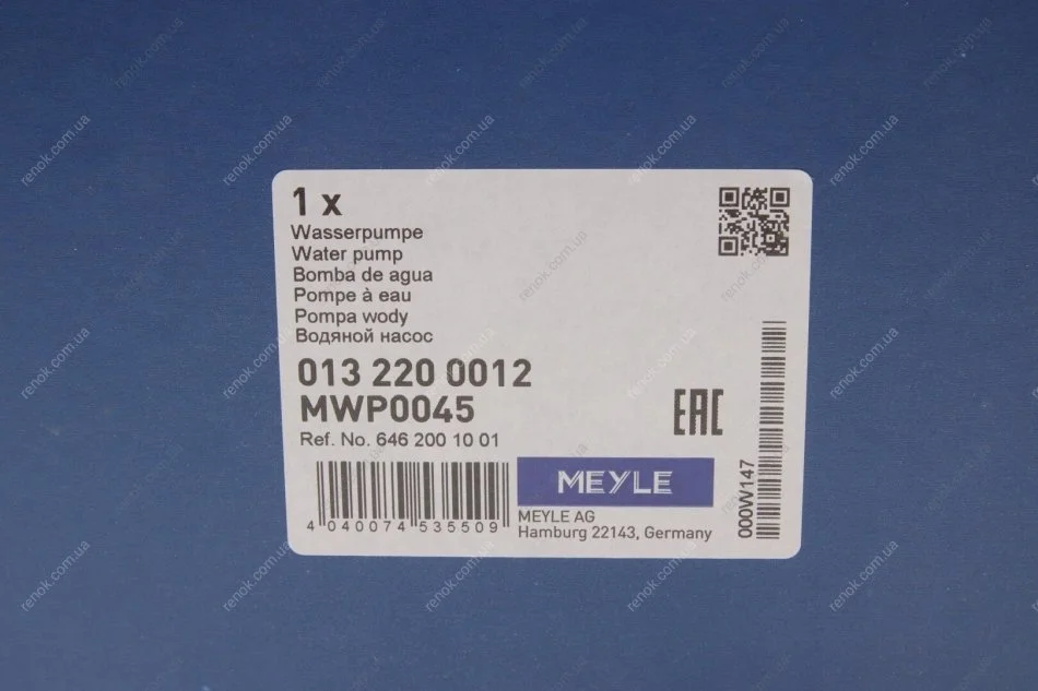 Водяний насос MEYLE 013 220 0012 (a6462001001, A6462001601, 6462001601)