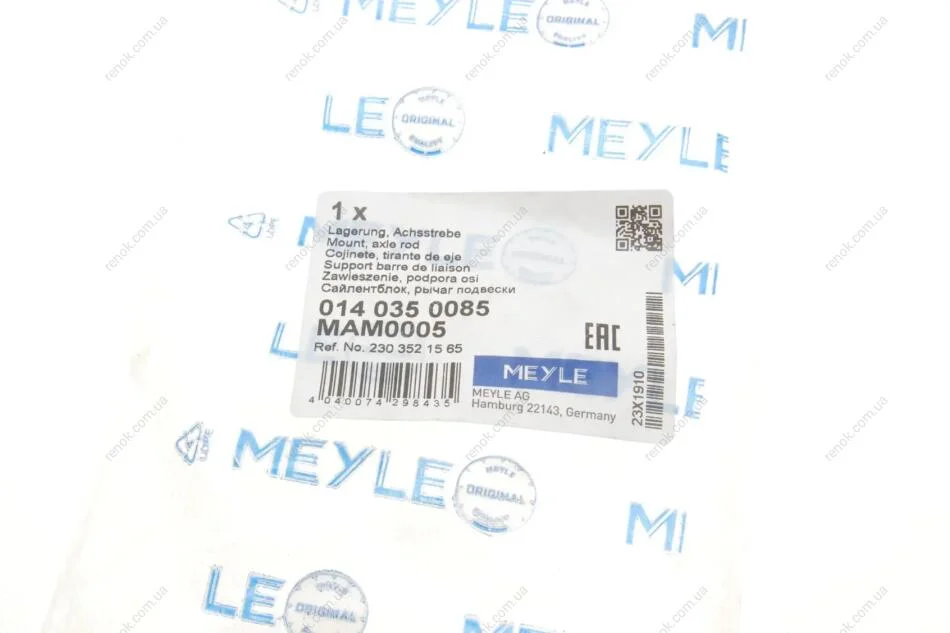 Аналоги "014 035 0085 MEYLE":