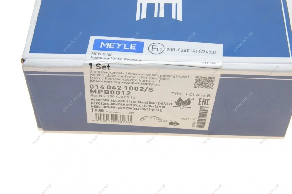 Колодки ручника MB E-class (W211)/CLS-class (C219) 04-10 (180x25) (з пружинками) MEYLE 014 042 1002/S (a2304200320, 2304200320)