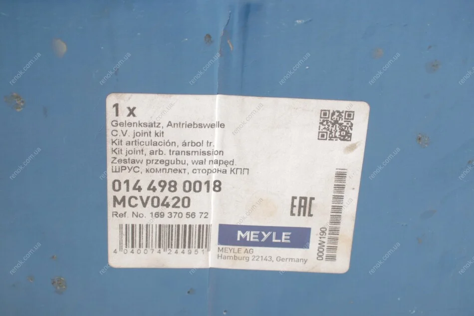 РШ шарнір (комплект) MEYLE 014 498 0018 (a1693704772, A1693704872, A1693705672)