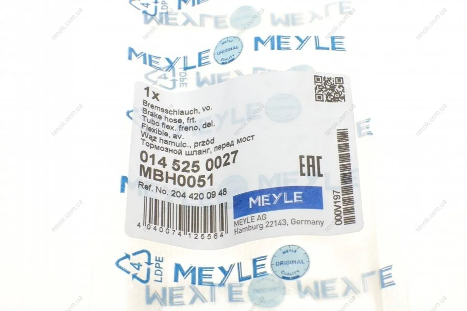 Шланг гальмівний MEYLE 014 525 0027 (a2044200448, A2044200948, 2044200948)