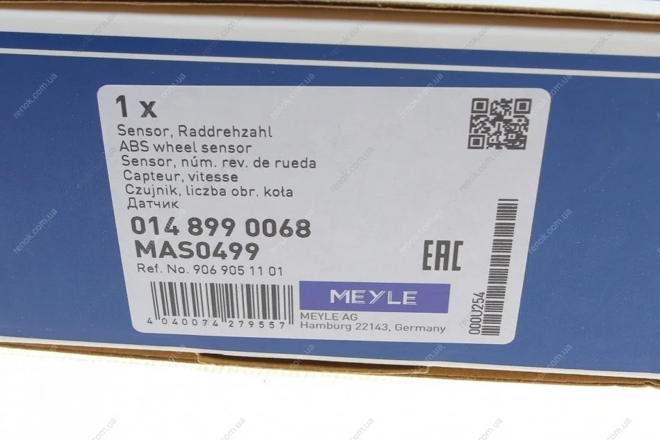 Датчик швидкості обертів коліс антиблокувальної системи гальм MEYLE 014 899 0068 (a9065404417, 9065404417, A9069051101)